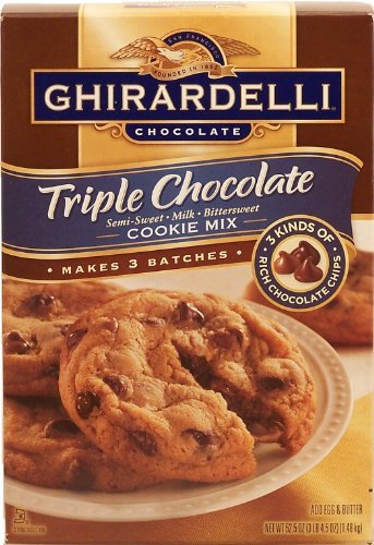 Ghirardelli Triple Chocolate cookie mix with semi-sweet, milk, and bittersweet chocolate, makes 3 batches, add egg & butter 52.5 oz BoxB004YP913EASIN