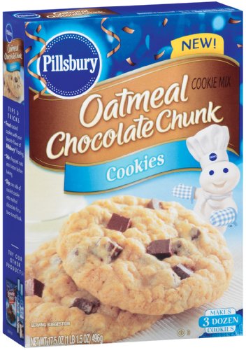 Chewy, chunky, crispy, crunchy — Pillsbury Cookie Mixes are available in 8 delicious flavors that you can bake just the way you like.Pillsbury Oatmeal Chocolate Chunk Cookie Mix, 17.5000-Ounce (Pack of 6) Feature