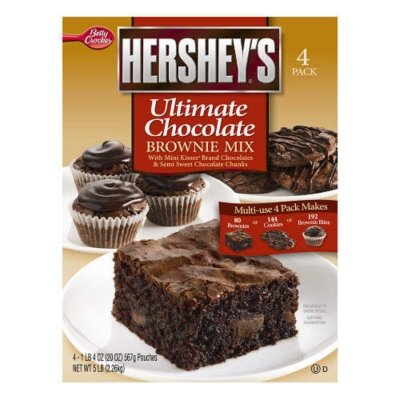 Makes a variety of delicious treats - brownies, cookies or brownie bites. Contains Mini Kisses® and semi-sweet chocolate chunks.Betty Crocker Ultimate Chocolate Brownie Mix (4 individual pouches) Feature