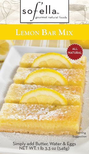 With our Lemon Bars, we began with a family favorite recipe to create a dessert ideal for any special occasion. By delicately balancing the natural flavors of lemon and vanilla we have created a delicious dessert that is All Natural, Gourmet and easy to prepare.Sof' Ella Lemon Bar Mix, 19.3-Ounce (Pack of 4) Feature